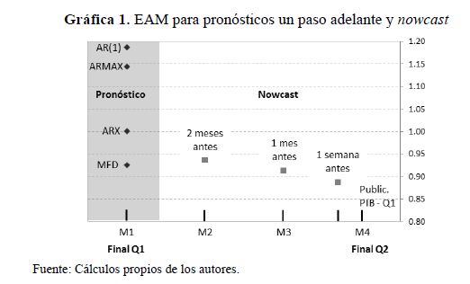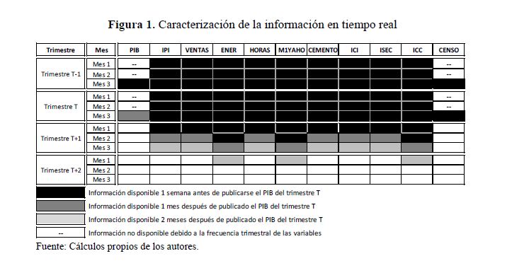 La toma de decisiones de política económica requiere estimaciones del comportamiento de la actividad económica en tiempo real. Sin embargo, la información utilizada solo está disponible a nivel de indicadores de actividad y de encuestas de opinión, los cuales suelen tener distintas frecuencias y rezagos de publicación, además de choques idiosincráticos. En este trabajo se adaptan para la economía colombiana los esquemas de pronóstico de Camacho y Perez-Quiros (2009,2010) que producen estimaciones del crecimiento del PIB en tiempo real. El modelo de factores dinámicos adaptado involucra series de actividad de diferente frecuencia, disponibilidad y procedencia, empleadas con la información disponible en el momento de cada publicación. La evaluación de pronóstico sugiere que el modelo presenta un mejor desempeño frente a otros esquemas de referencia, y que la precisión de los pronósticos aumenta al incorporar el flujo de información en tiempo real de los indicadores de actividad.