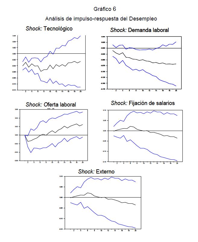 En este artículo se analizan las fuentes del desempleo en Colombia en el marco de un modelo estructural de corrección de errores (SVEC). Con este propósito se estima un modelo de corrección de errores. El análisis de cointegración muestra la existencia de una relación de largo plazo entre la productividad, el empleo, el desempleo, la tasa real de cambio y el salario real. Con base en la forma reducida del modelo de corrección de errores se identifican los shocks estructurales y se determina su importancia para el desempleo a partir del análisis de impulso respuesta y la descomposición de la varianza del error de pronóstico.