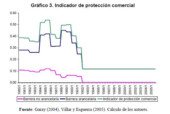 En los últimos años se ha desarrollado en la literatura internacional una corriente de estudio enfocada a examinar los efectos del libre comercio sobre la inflación. Este trabajo pone a prueba la hipótesis de una conexión entre el grado de apertura de la economía colombiana y su tasa de inflación. Con un modelo P-estrella, el artículo muestra que una 05r apertura al comercio internacional no implica 05res o menores tasas de inflación sino una 05r sensibilidad de esta a choques externos. El ejercicio requirió la construcción de tres variables: inflación externa, devaluación nominal del peso contra las monedas del mundo y un indicador de protección comercial.