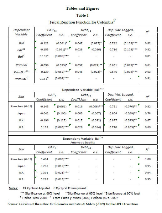 The purpose of this study is twofold: First, it provides an empirical characterization of fiscal policy in Colombia over the last decades, by assessing the three most relevant macroeconomic factors: the behavior of fiscal policy over the business cycle; w