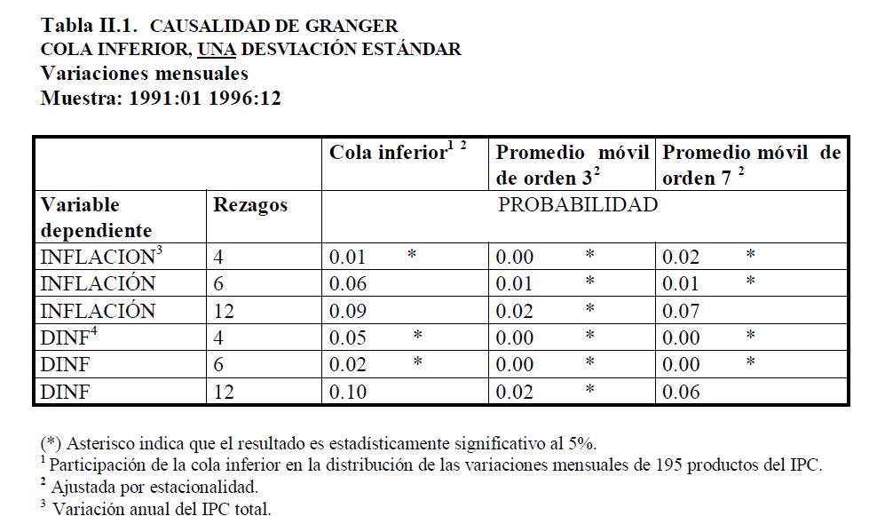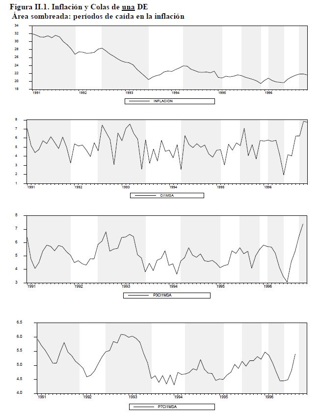El documento reúne una serie de notas que estudian aspectos empíricos del comportamiento de la tasa de interés y la inflación en Colombia. La presentación se divide en dos grandes secciones. La primera analiza la relación entre la tasa de interés y la inflación, con el fin de evaluar el empleo de la primera como instrumento de la política monetaria . Esta indagación se aborda en tres pasos: primero, se estudia la relación entre las diferentes tasas de interés de mercado, esto es, la tasa interbancaria, la de captaciones del sistema financiero y la de créditos. Se utilizan tres herramientas empíricas, el estudio de estacionalidades, los vectores autorregresivos y el análisis espectral (a través del estadístico coherencia, del cual se presenta una breve e intuitiva explicación). Se observa que las tres tasas comparten un comportamiento estacional ascendente al final del año y se relacionan estrechamente en sus ciclos de entre 7 semanas y 2 meses, y entre 3 y 4 meses. Estos resultados, así como los obtenidos con la metodología de vectores autorregresivos, permiten llegar a la conclusión de que es posible afectar las tasas de colocación y captación a través de intervenciones en la tasa interbancaria. A partir de lo anterior, el segundo paso analiza la relación entre la tasa de interés (nominal y real), la inflación y la actividad económica. Se observa que un choque de una desviación estándar a la CDT no afecta a los sectores minero y de servicios (transporte, agua, electricidad), pero tiene un efecto negativo sobre el PIB y la producción industrial y agrícola. Debe destacarse que este último efecto tiene mayor magnitud y duración cuando el cambio se da en la tasa de interés nominal. También es interesante el resultado de que cambios en la tasa de interés tengan un efecto diferente sobre los sectores de servicios, pues un hecho similar se ha documentado para economías industrializadas; los estudios indican que la demanda de servicios es menos sensible a cambios en el ingreso que la de manufacturas. En cuanto al efecto sobre la inflación, su dirección depende crucialmente de si el choque se da sobre la tasa real o nominal: en el primer caso la inflación cae inmediatamente, mientras en el segundo parece responder con un leve ascenso, en especial 6 meses luego del choque. La tercera sección de la primera parte elabora un cálculo de la tasa real ex-ante, dado que ésta es la tasa de interés relevante para el tipo de análisis realizado. La primera conclusión que se desprende de este cálculo es que, salvo cuatro o cinco episodios puntuales, la diferencia entre las tasas reales ex-ante y ex-post no es marcada, y su evolución apoya la validez de los VAR estimados con la tasa ex-post para medir el impacto de la política monetaria. El ejercicio es útil, además, para analizar ciertos aspectos de la relación entre la tasa nominal y la tasa real ex-ante, y de esta última con la inflación esperada. En particular, parece existir una correlación negativa entre la tasa ex-ante (CDTreal) y la inflación esperada (INFE). Tal relación es importante por que indica en que la tasa de interés nominal de corto plazo no ha proveído una protección efectiva contra la inflación. Éste es un resultado documentado para los Estados Unidos y para países europeos, y la evidencia muestra que es bastante robusto. La segunda parte del documento analiza dos aspectos puntuales de la inflación en Colombia. En primera instancia se elabora un indicador líder de la inflación, que consiste en la cola inferior de la distribución de cambios en los componentes del IPC, a 1 y 2 desviaciones estándar. La idea es que cuando estas colas se llenan permiten prever que la inflación va a caer con un horizonte de entre 4 y 12 meses. Finalmente, se lleva a cabo la estimación de un tipo de costo de la inflación en Colombia desde 1972 hasta 1996, basado en la variabilidad de precios relativos. Un aporte importante de esta sección es el uso de un empalme de las tres series existentes de IPC, que permite tener datos unificados desde 1972 hasta el presente (la metodología empleada en este empalme se presenta en el apéndice). El método empleado consistió en correr una regresión de la variabilidad en precios relativos, medida como la desviación estándar de los incrementos anuales en 27 subgrupos del IPC, contra la tasa de inflación como variable independiente. Se realizaron estimaciones sucesivas, por ventanas de 36 meses, de tal forma que se obtuvo una serie del coeficiente de la inflación en esta regresión. Las conclusiones son: i.Según esta medición, el costo de inflación fue positivo durante los setenta y la primera mitad de los ochenta. Sin embargo, la inflación no parece haber sido costosa en el período 1987 - 1996. ii. El costo de la inflación no es constante a través del tiempo, sino que, podría conjeturarse, depende de la predictibilidad de esta variable para los agentes. Estos hechos parcialmente explican la percepción de una inflación no costosa que parece imperar en el país. De hecho, los agentes han podido predecir con fiabilidad la evolución futura de esta variable, ajustando sus precios acompasadamente, de tal manera que han dejado prácticamente inalterados a los relativos.