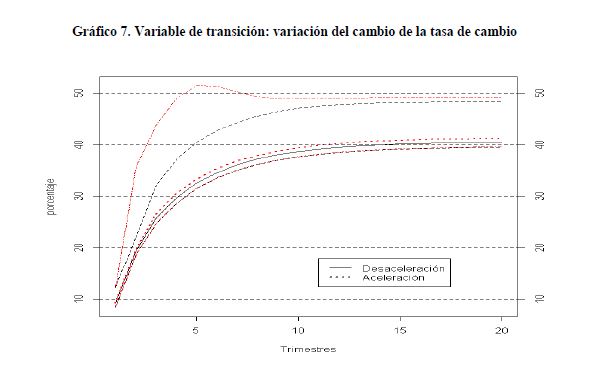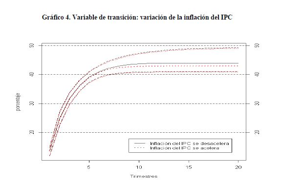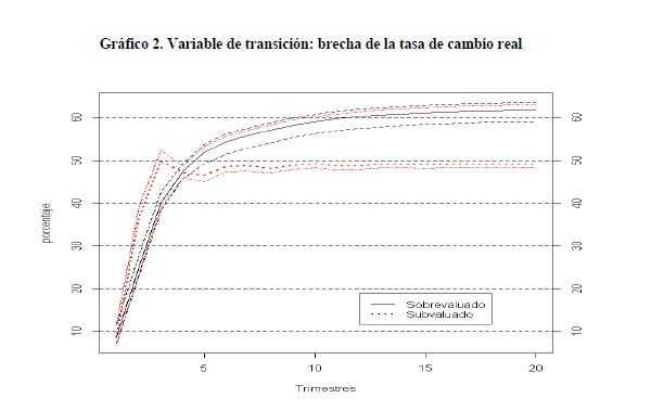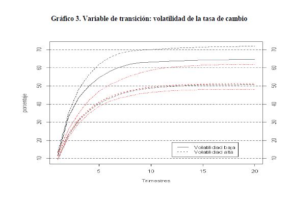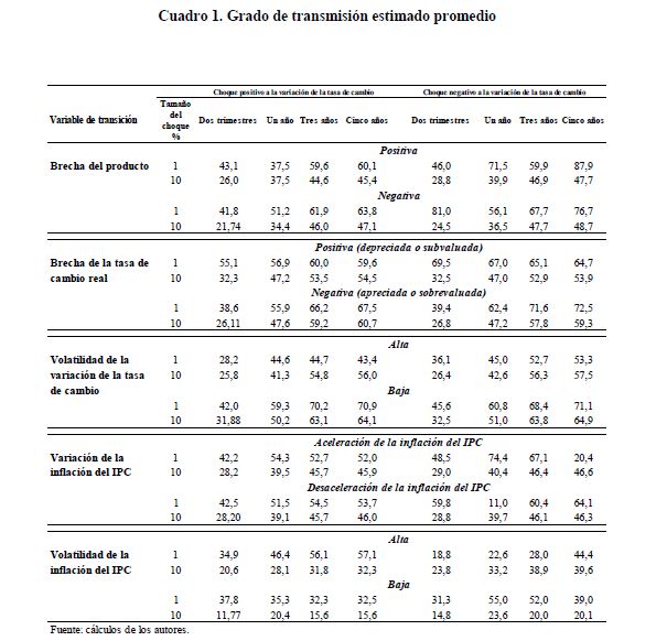 Conocer el grado de transmisión de los cambios en la tasa de cambio sobre la inflación interna es un interrogante constante de las autoridades monetarias de cualquier país. En este documento se reestima el grado de transmisión de corto y mediano plazo de las variaciones de la tasa de cambio del peso colombiano sobre la inflación de los bienes importados, estimados en González et al. (2010). Se utilizan datos trimestrales de Colombia para el período 1985-2014 y un modelo VAR no lineal de transición suave logística. Los resultados muestran que los grados de transmisión en general se mantienen, a pesar de la ampliación del período de estudio, que cubre la crisis financiera internacional 2007-2009, y de ajustes a la metodología econométrica implementada. Se concluye que el grado transmisión es incompleto, endógeno y asimétrico, tanto en el corto como en el mediano plazo. Además, que un choque a la variación de la tasa de cambio se transmite a la inflación de los bienes importados en grados que varían entre 12% y 88%.