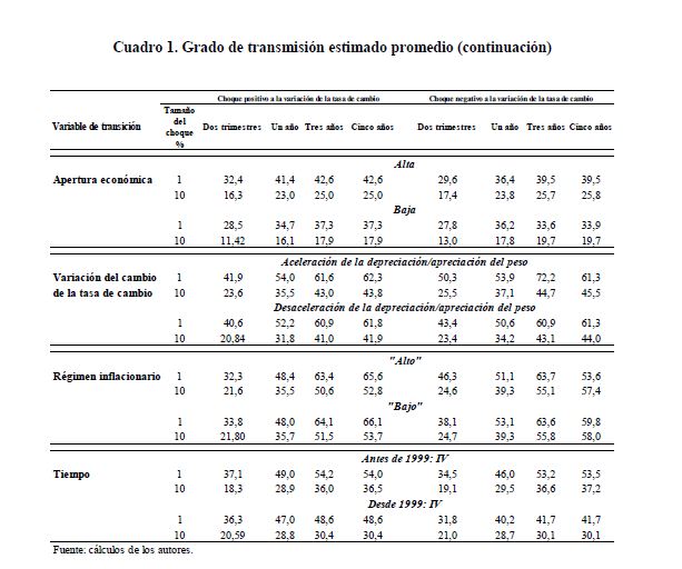 Reestimación del grado de transmisión de la tasa de cambio del peso sobre la inflación de los bienes importados