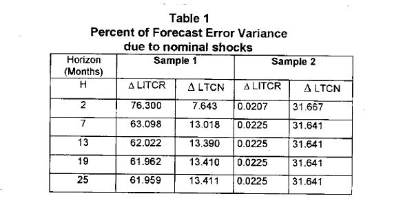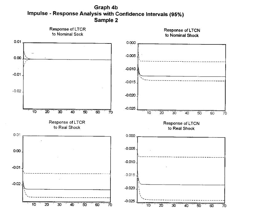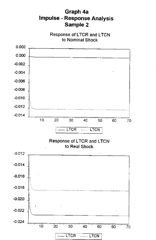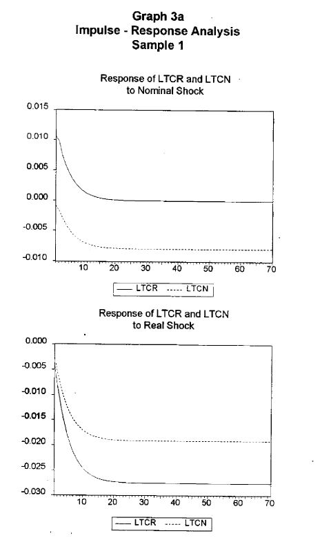 We identified and estimated a SVAR model in the real and nominal exchange rates through the Blanchard and Quah decomposition. This enables us to provide results regarding the magnitude and length of nominal and real shock effects in the real and nominal e