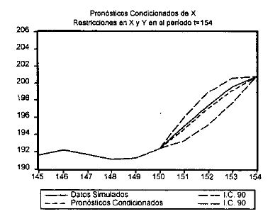 En este documento se presenta una metodología para estimar pronósticos con intervalos de confianza para modelos VAR o VEC. incorporando metas o restricciones lineales sobre los valores futuros de las variables. Esta metodología incluye la posibilidad de evaluar la compatibilidad entre las metas y los pronósticos del modelo bajo una prueba estadística. Adicionalmente, una aplicación del método se lleva a cabo utilizando unos modelos simulados.