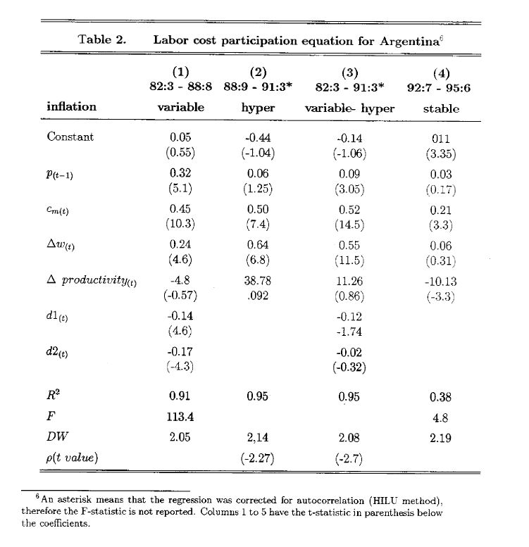 A price-setting mechanism based on a markup over variable costs is studied for the quite different inflationary experiences of Argentina and Colombia. The paper pursues a twofold strategy: first, it test the null hypothesis of a constant markup against th