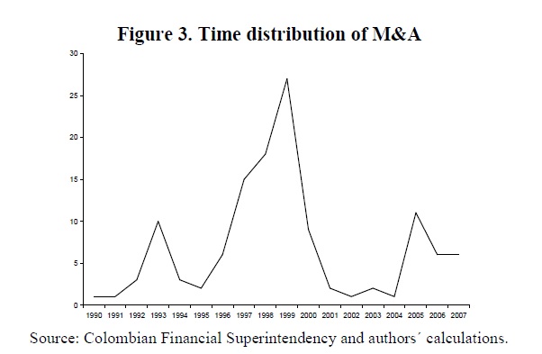 This paper studies the determinants of the probability of participating in a process of merging or acquisition for financial institutions in Colombia. We use survival analysis techniques and competing risks models to estimate the probability of participat