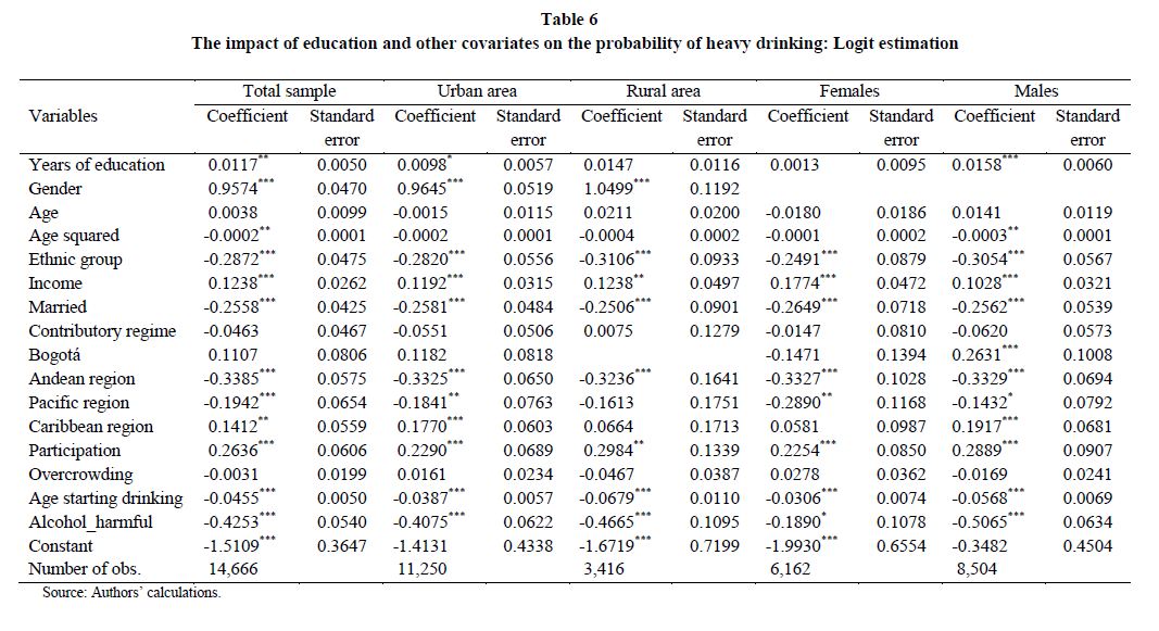 This paper uses the Colombian National Health Survey to analyze the relationship between education and risky health behaviors, namely smoking, heavy drinking, being obese, and unsafe sexual behavior, by estimating the education gradient using Logit models