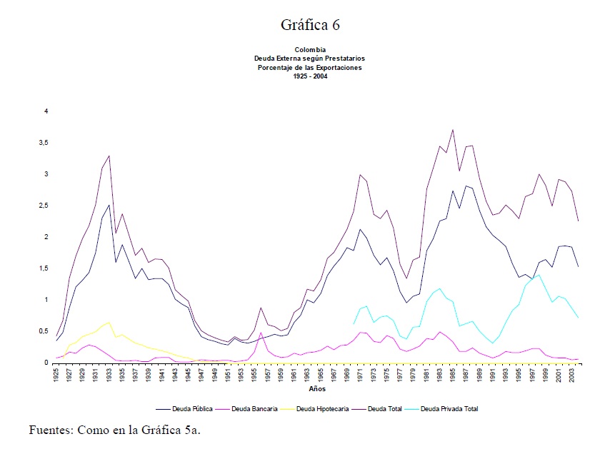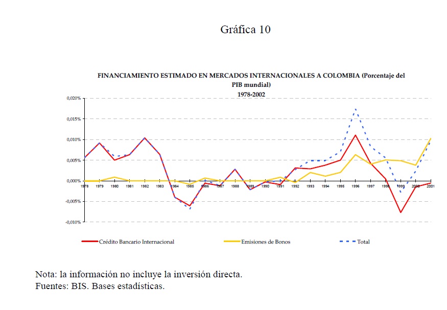 El acceso de Colombia y otros países latinoamericanos al financiamiento externo durante el siglo XX estuvo dominado por fases alternas de auge y receso en los mercados internacionales de capitales. Las relaciones entre los acreedores y los deudores fueron afectadas frecuentemente por el incumplimiento de los compromisos contractuales, incluyendo la cesación de pagos. Pero las renegociaciones, en unos casos, o los acercamientos entre acreedores y deudores, en otros, constituyeron el mecanismo mediante el cual se restableció la relación de largo plazo entre acreedores y deudores.