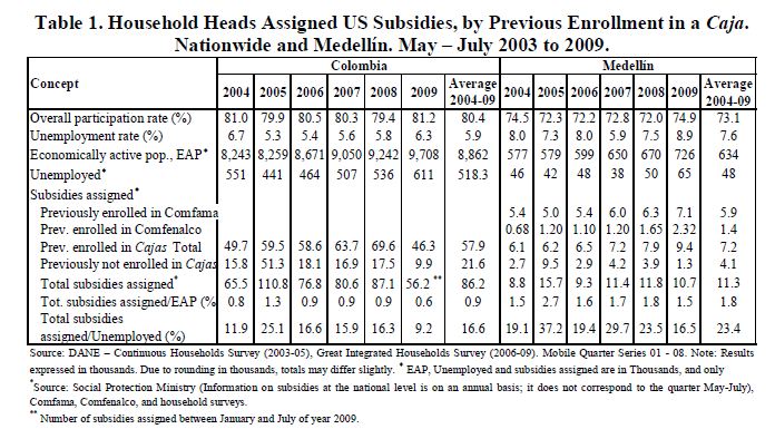 The unemployment subsidy program in Colombia: an assessment