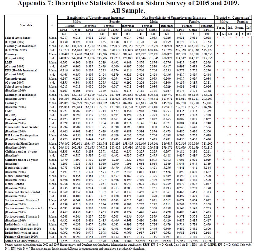 We assess the effects of the Colombian Unemployment Subsidy (US) program on future labor participation, unemployment, formality, school attendance and earnings of its beneficiaries, on household earnings and school attendance of the household members, and