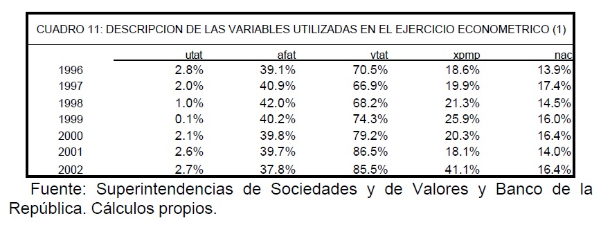 Determinantes de la estructura de capital de las empresas colombianas (1996-2002)