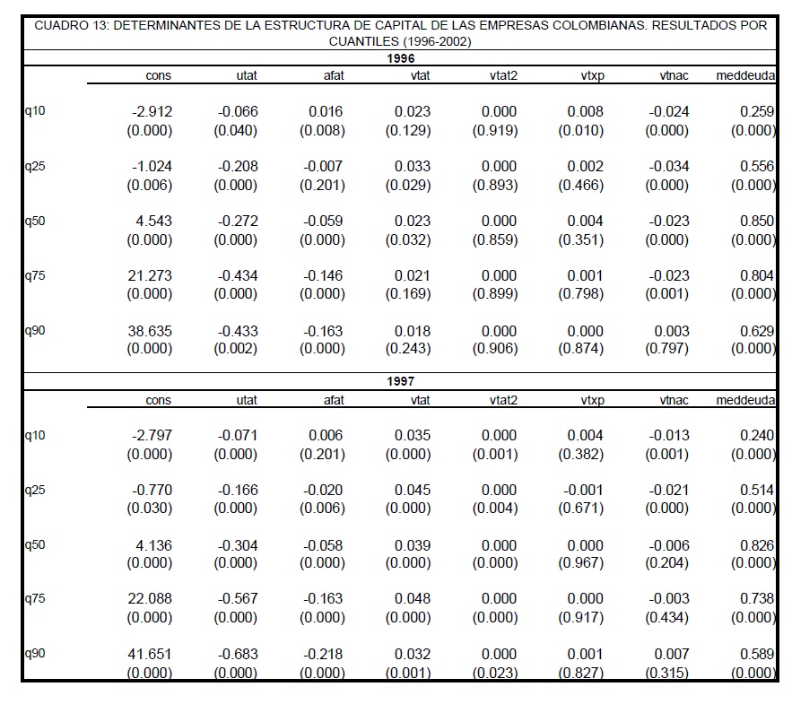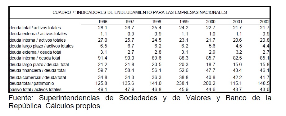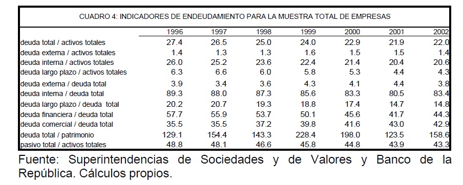 Determinantes de la estructura de capital de las empresas colombianas (1996-2002)
