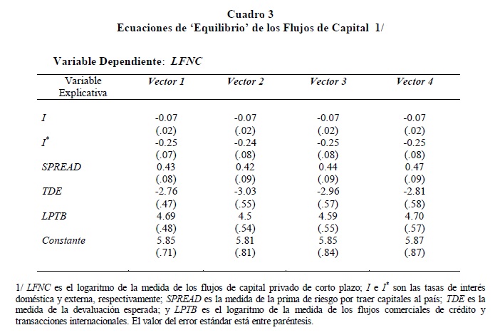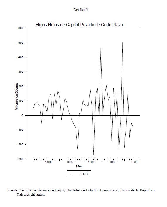 Este trabajo utiliza una medida de los flujos de capital privado de corto plazo y variables que buscan capturar los niveles de los créditos comerciales y de las transacciones internacionales y factores de expulsión y atracción para evaluar la efectividad de los controles de capital, específicamente de un depósito no remunerado sobre los flujos de crédito externo, en el caso colombiano. Se utiliza la metodología de Johansen y Juselius la cual permite usar directamente variables no estacionarias en las estimaciones y controlar por problemas de simultaneidad. La conclusión principal es que los controles han sido efectivos en disminuir los flujos de capital de corto plazo. La evidencia resalta también el papel jugado por factores de expulsión y atracción en la determinación de los flujos de crédito externo y muestra que la hipótesis de paridad descubierta de interés, ajustada por una prima de riesgo, no es satisfecha por los datos.