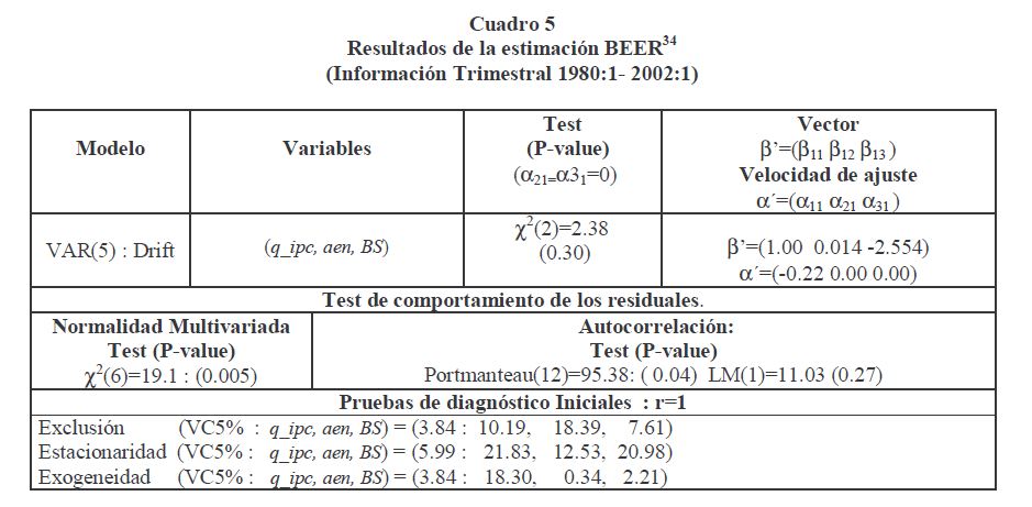 La estimación de los desequilibrios nominales y reales del tipo de cambio en Colombia es abordada en este documento a partir de la construcción de dos componentes: el permanente asociado con una tendencia estocástica y el transitorio vinculado con el ciclo. La separación entre lo permanente y lo transitorio se hace usando relaciones de largo plazo entre el tipo de cambio nominal (real) y sus determinantes fundamentales. La estimación de los desequilibrios nominales y reales (componente transitorio) se lleva a cabo para diferentes frecuencias (anual y trimestral) y periodos de información y se usan varios modelos de determinación del tipo de cambio nominal y real. El concepto de "common trends" (dual de cointegración) es introducido aquí para construir una variable no-observada, "el nivel de equilibrio" y para derivar medidas de desequilibrio. Es decir, se opta por derivar el componente permanente o de largo plazo del tipo de cambio nominal (o real) y asociarlo a su nivel de equilibrio y obtener por residuo su componente transitorio y relacionarlo con el desequilibrio. Dicha descomposición además de recuperar el componente no-estacionario (la tendencia estocástica) y estacionario (el ciclo), se hace usando los determinantes del tipo de cambio. Los resultados sugieren que el tipo de cambio real estuvo por debajo de su nivel de equilibrio durante los últimos periodos y que a 03 de 2002 continuaba ligeramente por debajo de éste.
