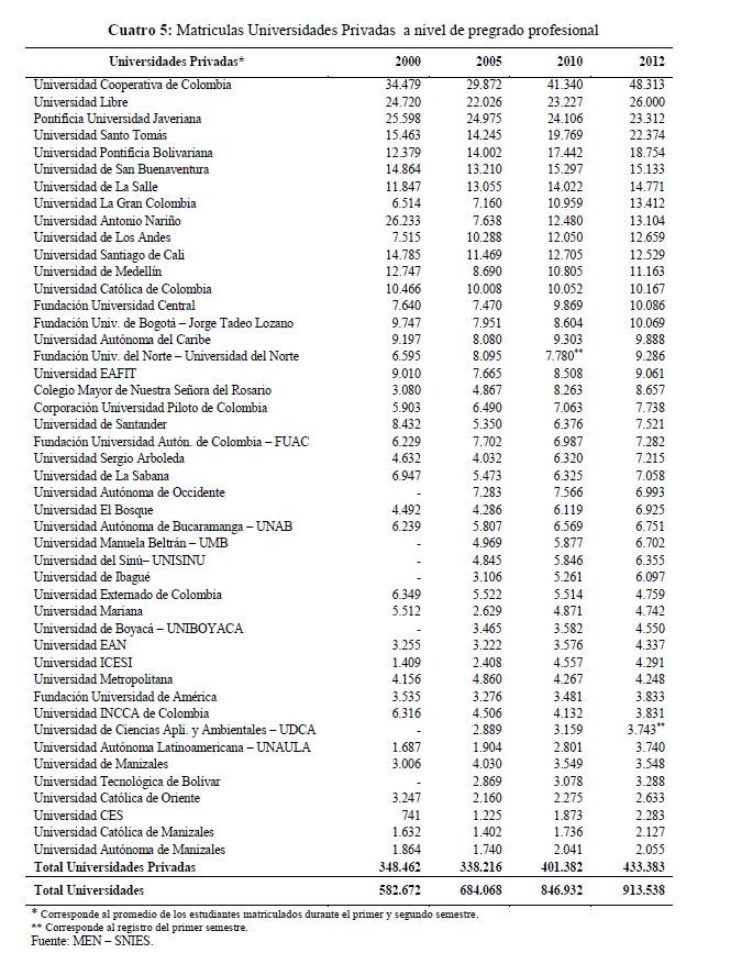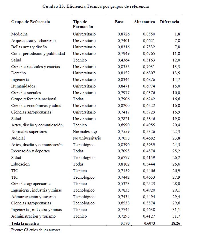 La educación superior en Colombia : situación actual y análisis de eficiencia