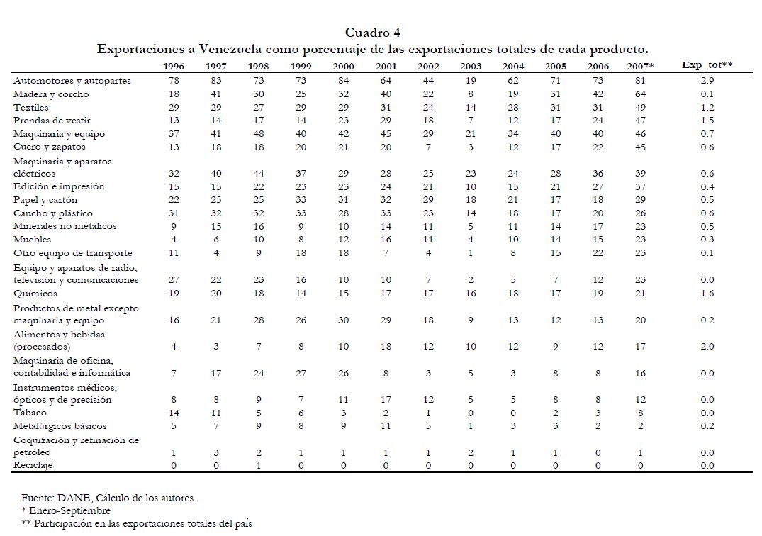 El mercado venezolano en las exportaciones colombianas: dependencia de los exportadores en 2006