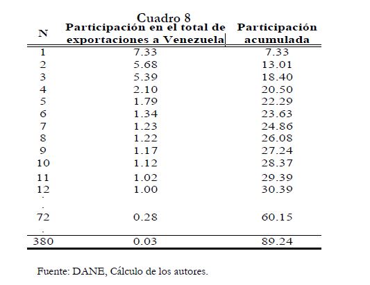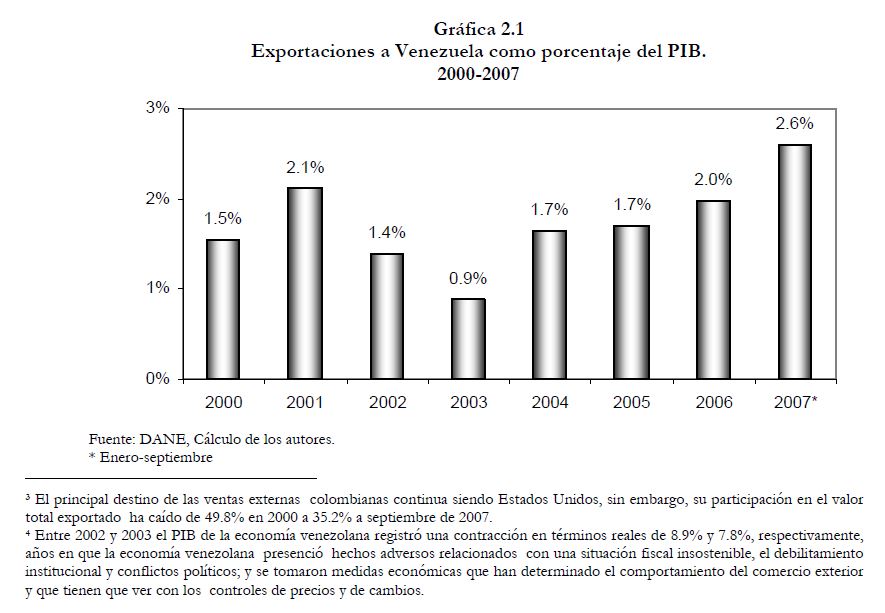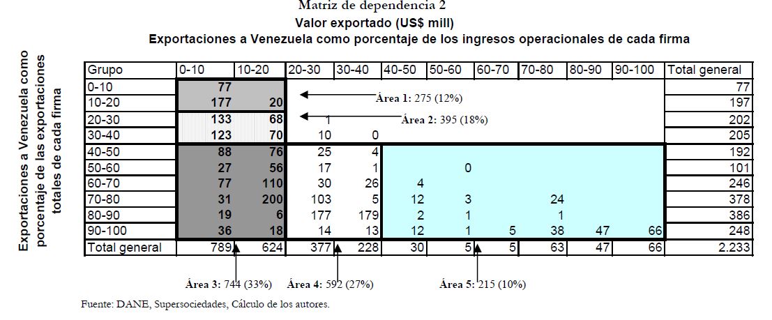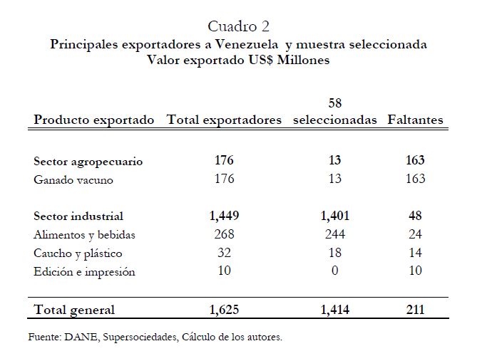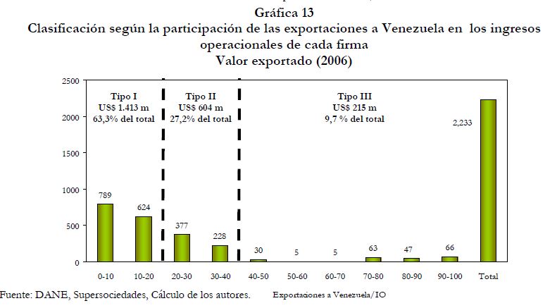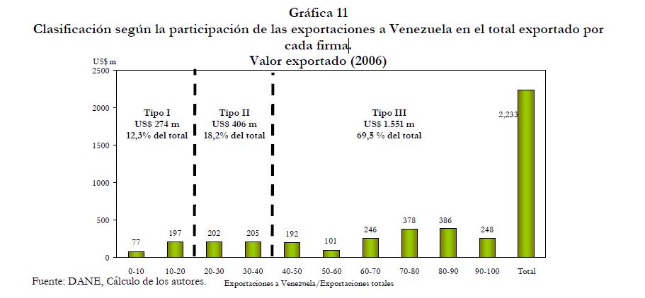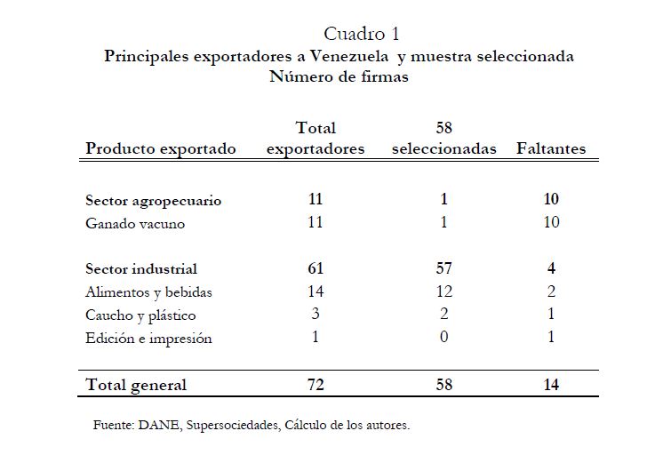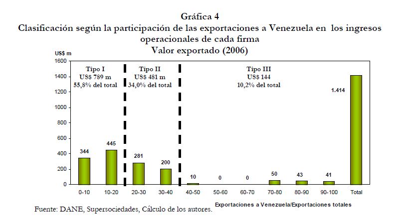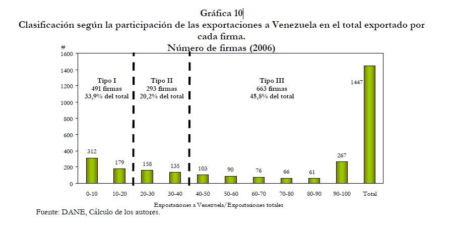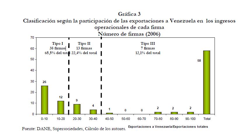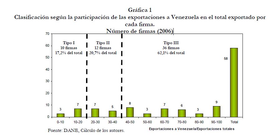 This document analyzes the recent behavior of firms exporting to Venezuela and the dependence of their revenues on sales to this destination. We use the database of foreign trade at the transaction level held by the Colombian Bureau of Statistics (Departa