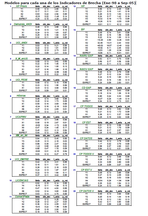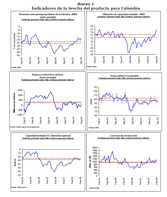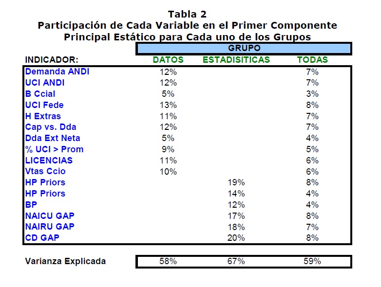 Una estimación adecuada de la brecha del producto es un requisito indispensable para la conducción de la política monetaria bajo el régimen de inflación objetivo. Por esta razón, en la literatura y al interior del Banco de la República, se trabaja con una gran variedad de mediciones a partir de técnicas alternativas. Desafortunadamente, como la brecha del producto es una variable no observable, siempre hay gran incertidumbre sobre cualquier estimación. Para sobreponerse a este problema, en el Departamento de Inflación se siguen regularmente una amplia gama de indicadores, en especial encuestas de opinión empresarial y datos de actividad, para mejorar la comprensión de la situación de la economía en el ciclo y para identificar posibles presiones de demanda. Aunque en principio parece razonable y adecuado contar con gran cantidad de medidas y monitorear diversas fuentes de información complementarias, en la práctica resulta problemático poder resumir de manera eficiente la información disponible en una sola medida que pueda ser utilizada para producir pronósticos de inflación y recomendaciones de política. Hasta hace poco, la reducción de la información se hacía a partir del juicio de los expertos sobre los pesos relativos que se asignaban para cada medición y para la información proveniente de encuestas. Lo cual potencialmente podía conducir a un problema de variables omitidas y a sesgar cualquier estimación. Para resolver este problema en este trabajo se estima un indicador de brecha del producto como el factor no observado entre los datos disponibles. Dicho factor se estima utilizando componentes principales estáticos, el cual debe resumir la información contenida en los datos mientras que excluye cualquier error presente en las medidas originales. La calidad del indicador se evalúa posteriormente a partir de su capacidad predictiva de la inflación básica de bienes no transables en Colombia, mediante una Curva de Phillips híbrida. Los resultados sugieren, como se esperaba, que el indicador de brecha del producto es superior a cualquiera de las medidas individuales para señalar presiones de demanda, puesto que combina de manera eficiente la información de varias fuentes. Adicionalmente se encuentra, que los pronósticos fuera de muestra se pueden mejorar si se excluyen para la estimación del indicador aquellas medidas que provienen de filtros estadísticos. Lo cual reafirma la importancia de seguir fuentes alternativas de información, en especial de encuestas de opinión industrial, a pesar de que la industria tan sólo pesa un 15% del PIB en Colombia.