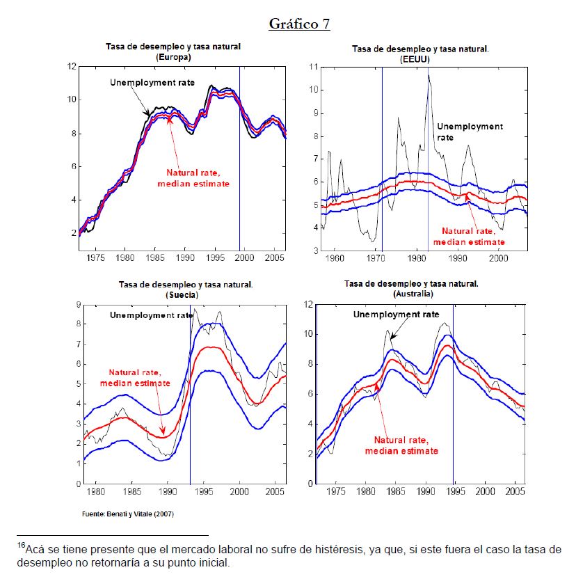 This paper provides an estimation of the natural rate of unemployment for Colombia in 1984-2006. The model used is in the same spirit of Blanchard (1991)’s wage bargaining and uses a Kalman filter to estimate a system of equations for the natural rate of