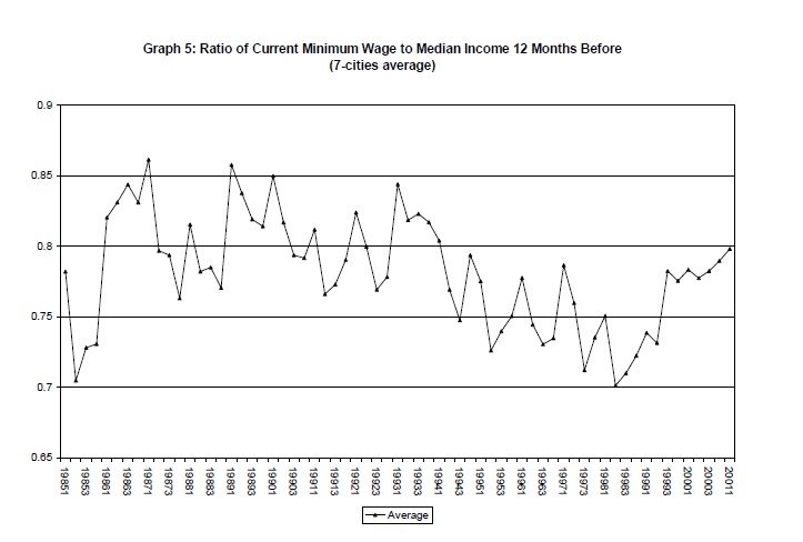 This paper exploits the long history of the minimum wage in a relatively stable developing economy like Colombia in order to see whether it may alleviate the living conditions of low income families and reduce income inequality. The paper does not only ex