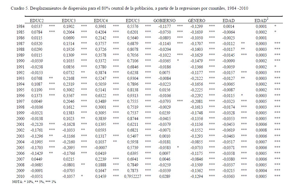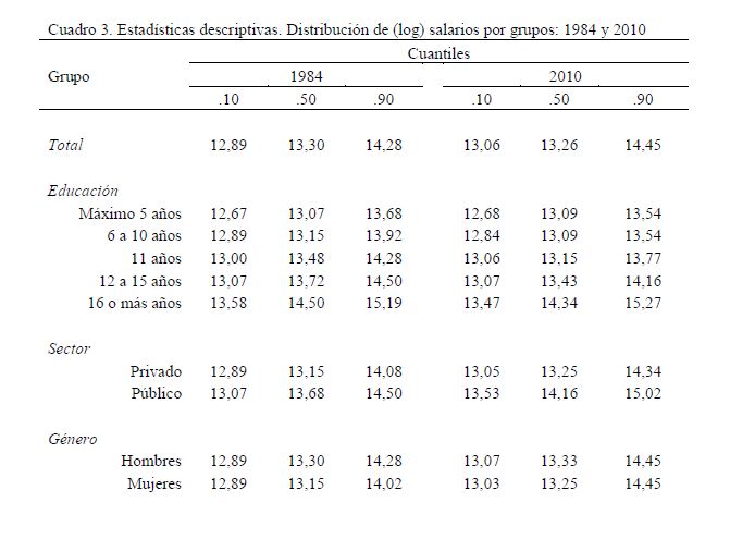 Desigualdad de salarios en Colombia : evidencia a partir de encuestas de hogares 1984-2010