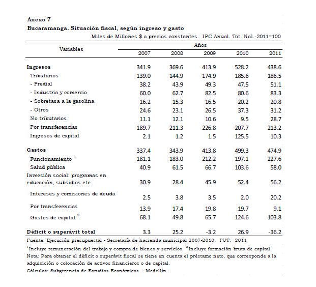 Evolución de las cifras fiscales entre 2007 y 2011 : gobiernos centrales de las principales seis ciudades colombianas