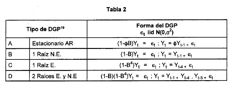 Como lo señalan Campbell y Peron (1991) las dificultades que ofrece la estimación de modelos con variables que presentan tendencia estocástica están asociados con varios hechos, de los cuales sobresalen los siguientes: (i) las distribuciones teóricas estándar(1) no pueden ser utilizadas en pruebas de hipótesis que involucran a dichas series; (ii) la potencia de test en muestras pequeñas es limitada(2), (iii) los procedimientos de evaluación de la presencia de raíz unitaria de algunos casos pueden desarrollarse a partir de un proceso secuencial, lo que implica una pérdida de potencia en los test que podría deteriorarse, aún más, en la medida en que el investigador desconoce el verdadero DGP, (el verdadero proceso generador de los datos); (iv) la sobre (sub) parametrización del modelo para capturar componentes de tendencia determinística disminuye (aumenta) la potencia del test cuando se tiene como hipótesis alterna a un proceso estacionario.