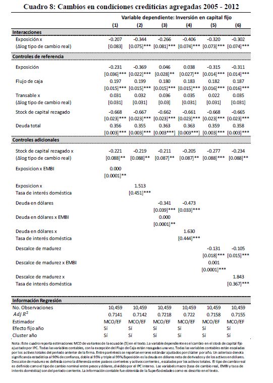 Usando una base de datos tipo panel con una muestra de firmas del sector real colombiano, se determina que las empresas en Colombia no calzan la composición por monedas de sus pasivos con la de sus activos e ingresos. Siguiendo la metodología de Cowan et. al (2005), se encontró que una depreciación de 10% del tipo de cambio real, similar a la ocurrida en Colombia en 1999, provoca una reducción de 3% en la tasa de inversión en activos fijos de aquellas firmas con la mitad de su deuda en dólares comparadas con aquellas que tienen cero, ceteris paribus. Los resultados muestran la importancia de tener una medición adecuada del grado de exposición cambiaria de la firma al momento de cuantificar los efectos de una depreciación sobre inversión y producción.