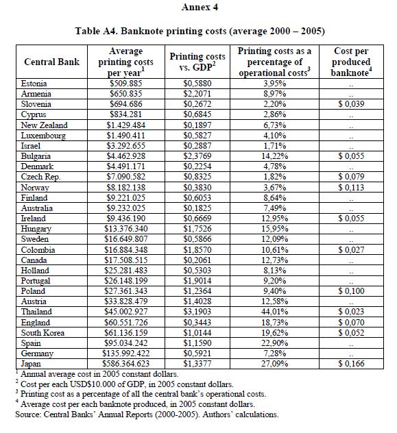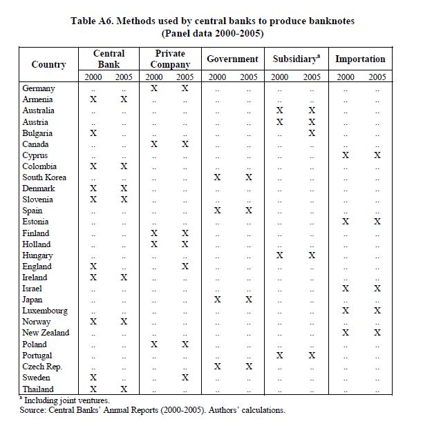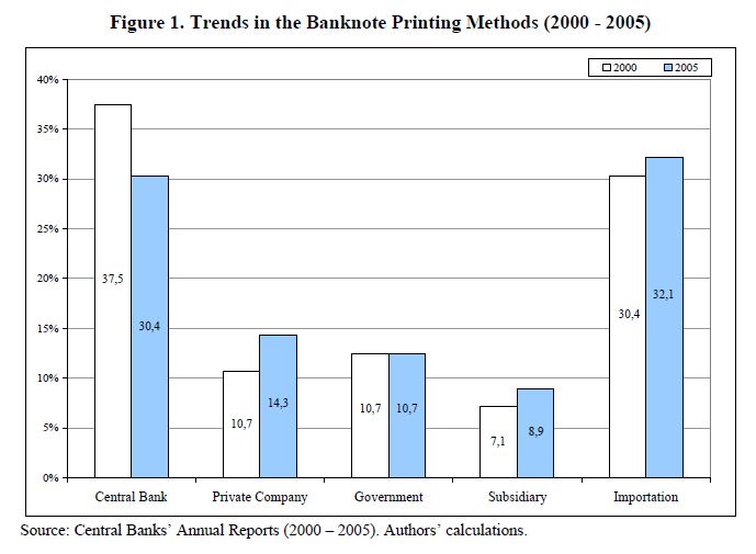 This paper examines trends in banknote printing during the period 2000-2005 for a crosssection of 56 central banks. It was identified that central banks have implemented new strategies to increase efficiency in the production of banknotes, primarily due t