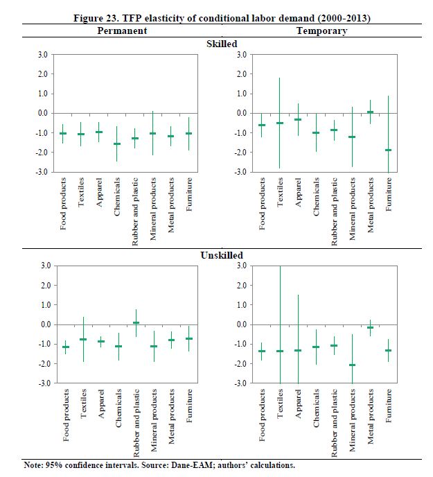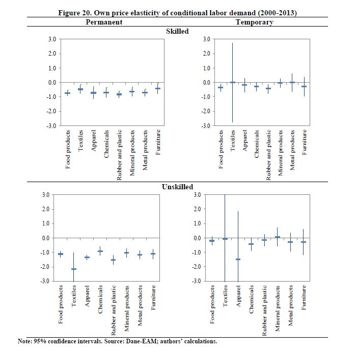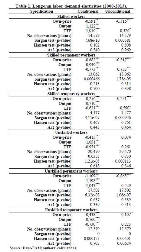 Using the Colombian Annual Manufacturing Survey (EAM) between 2000 and 2013, this paper investigates the existence of heterogeneity in the labor demand within the industrial sector. Long run own-price, output and TFP elasticities vary across a variety of