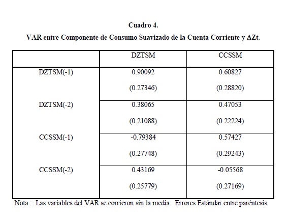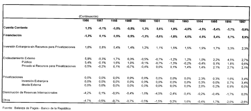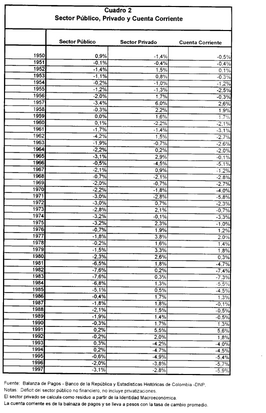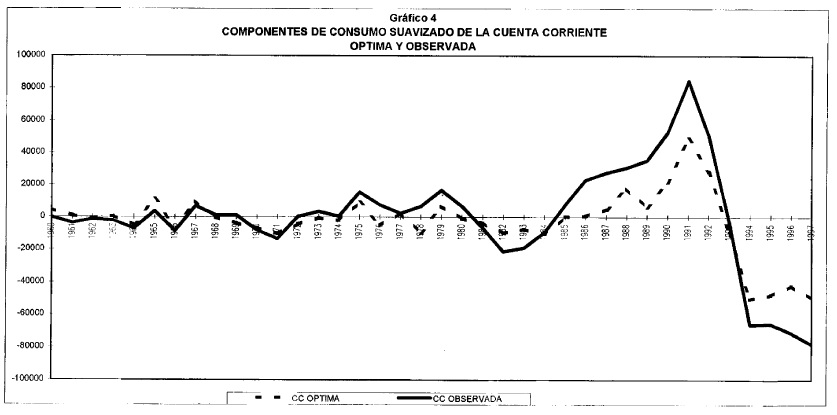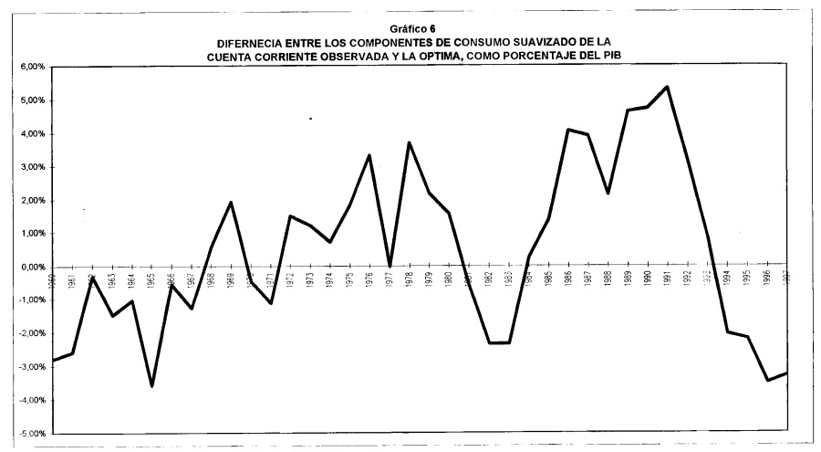 En el presente artículo se presenta una breve descripción de la cuenta corriente en Colombia desde 1950 y posteriormente se analiza la relación entre el consumo privado y la cuenta corriente. Esta relación se analiza mediante un modelo intertemporal de la cuenta corriente derivado a partir de la teoría de ingreso permanente, que permite encontrar los niveles óptimos de la cuenta corriente bajo este enfoque. En este artículo se analiza la cuenta corriente como el ahorro externo de la economía. De acuerdo a la teoría del ingreso permanente el ahorro de la economía debe suavizar los choques transitorios o anticipados al ingreso. El objetivo del trabajo es comprobar si efectivamente la cuenta corriente, durante el periodo 1950-1996, se ha comportado como esta teoría lo predice y, si lo ha hecho, analizar los periodos en que la cuenta corriente observada se ha alejado significativamente de la que la teoría predeciría. Los modelos intertemporales de la cuenta corriente encuentran un nivel óptimo de la cuenta corriente, de acuerdo a la teoría y bajo los supuestos de economía pequeña y pleno acceso a los capitales. Este nivel es comparado con la trayectoria observada y se puede concluir si el comportamiento de los agentes es óptimo o no, de acuerdo con esta teoría. Se han desarrollado modelos que encuentran la trayectoria óptima de la cuenta corriente teniendo en cuenta las expectativas de los agentes y el conjunto de información disponible, utilizando modelos VAR. Este tipo de análisis se ha realizado para algunos países desarrollados (Sheffrin y Woo, 1990a y 1990b), para Canadá y Estados Unidos (Otto, 1992), para Australia(Cashin y McDermott, 1996), para Francia (Agenor et. al., 1995), para países en vías de desarrollo donde se incluyen algunos resultados para Colombia (Ghosh y Ostry, 1995) y para Colombia (Herrera, 1997). El artículo se dividirá en cinco secciones más, en la primera se presenta una descripción de la cuenta corriente, en la segunda se presenta el modelo, en la tercera se estima, en la cuarta se comprueba su validez y en la quinta se presentan algunas conclusiones.