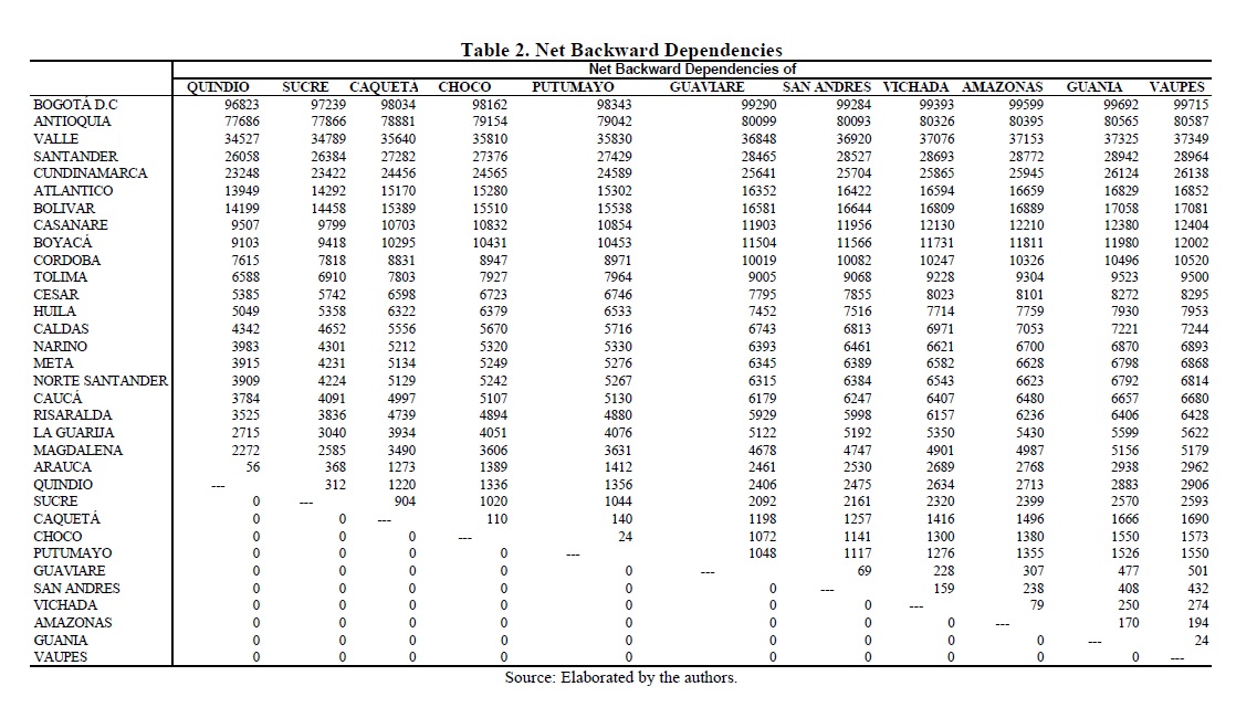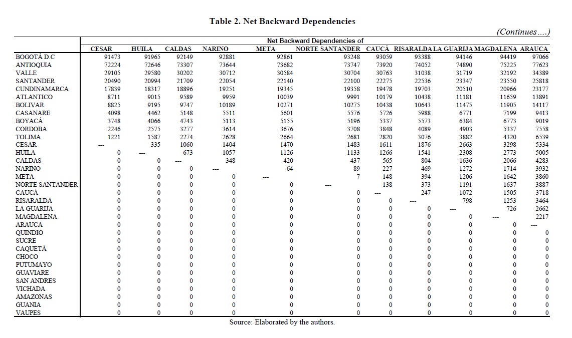 Structural interdependence among colombian departments