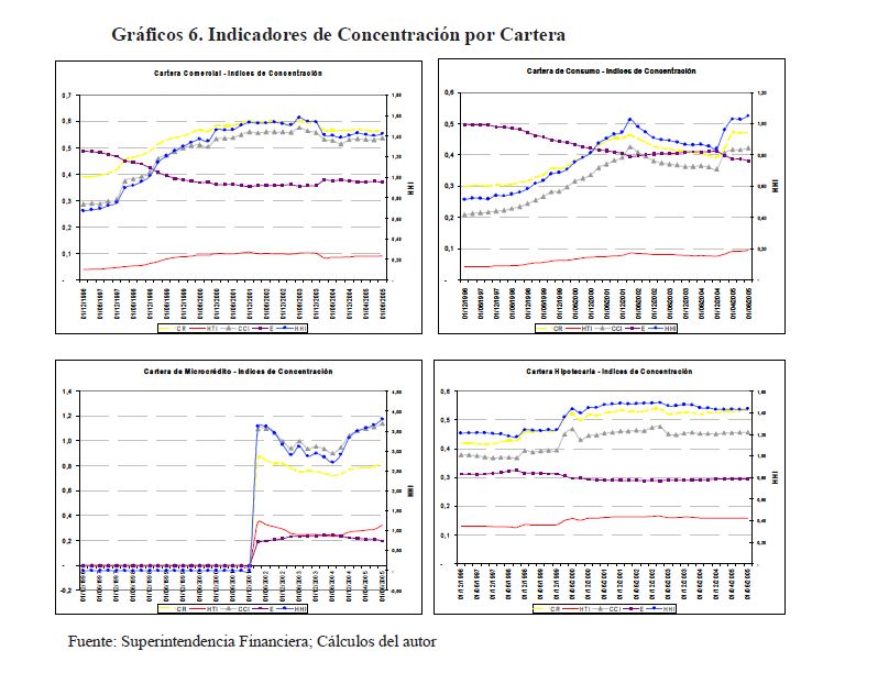 Este trabajo estudia la relación entre los aumentos en la concentración y las dinámicas de competencia del sector financiero crediticio de los últimos años en la economía colombiana. Se encuentra que a pesar de los incrementos en la concentración que reflejan diversos indicadores analizados, el nivel de poder de mercado -medido como el estadístico H de Panzar y Rose (1987) por medio de un análisis de panel de datos- no se ha deteriorado en el periodo 1995-2005. Más aún, existen indicios por los cuales este nivel de competencia se ha incrementado en el periodo, una vez se ha controlado por variables específicas a la entidad así como por variables exógenas macroeconómicas.