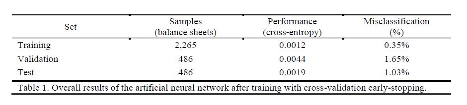 The balance sheet is a snapshot that portraits the financial position of a firm at a specific point of time. Under the reasonable assumption that the financial position of a firm is unique and representative, we use a basic artificial neural network patte
