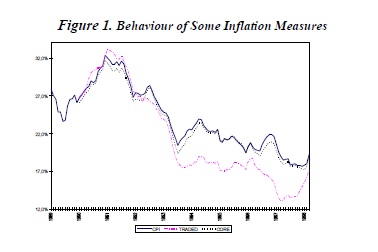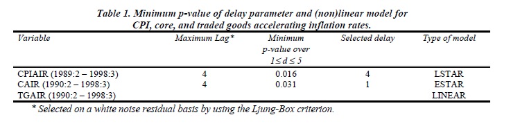 Evidence of smooth transition autoregressive (STAR) representations is found in two, out of three, time series of different measures of annual inflation in Colombia during this decade for monthly data. The STAR-type nonlinearities are asymmetric for infla