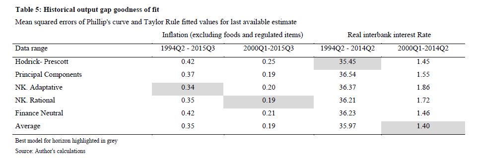 In this paper output gaps that include financial cycle information are evaluated against models used in policy analysis by the Colombian central bank. Employing this dataset is no trivial matter, since policy related models are the only relevant yardstick