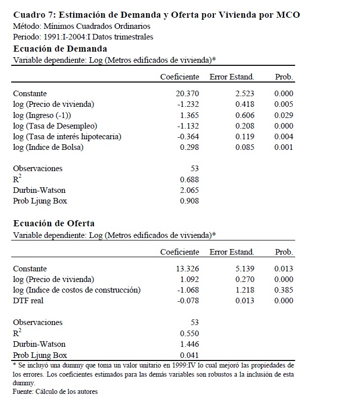 | dc.description | El objetivo de este trabajo es proporcionar una visión de conjunto del mercado hipotecario en Colombia y su relación con los principales determinantes que se encuentran a nivel internacional. Nuestras recomendaciones apuntan a examinar la cadena productiva y obtener un mejor entendimiento de las estadísticas "vitales" del sector vivienda y su relación con las condiciones crediticias. También presentamos un modelo simultáneo tendiente a explicar los ciclos de precios hipotecarios en Colombia durante el periodo 1990-2003. Por el lado de la demanda, encontramos que el metraje construido es bastante elástico al ingreso laboral de los hogares y al precio de la vivienda nueva, así como a la tasa de interés real. Por el lado de la oferta, se observó una elasticidad alta a los costos de construcción y un efecto riqueza moderado. Estos resultados son robustos a diferentes tipos de estimación. | spa |