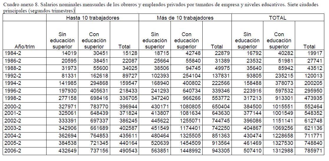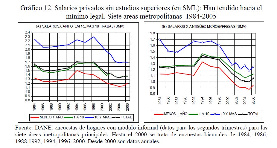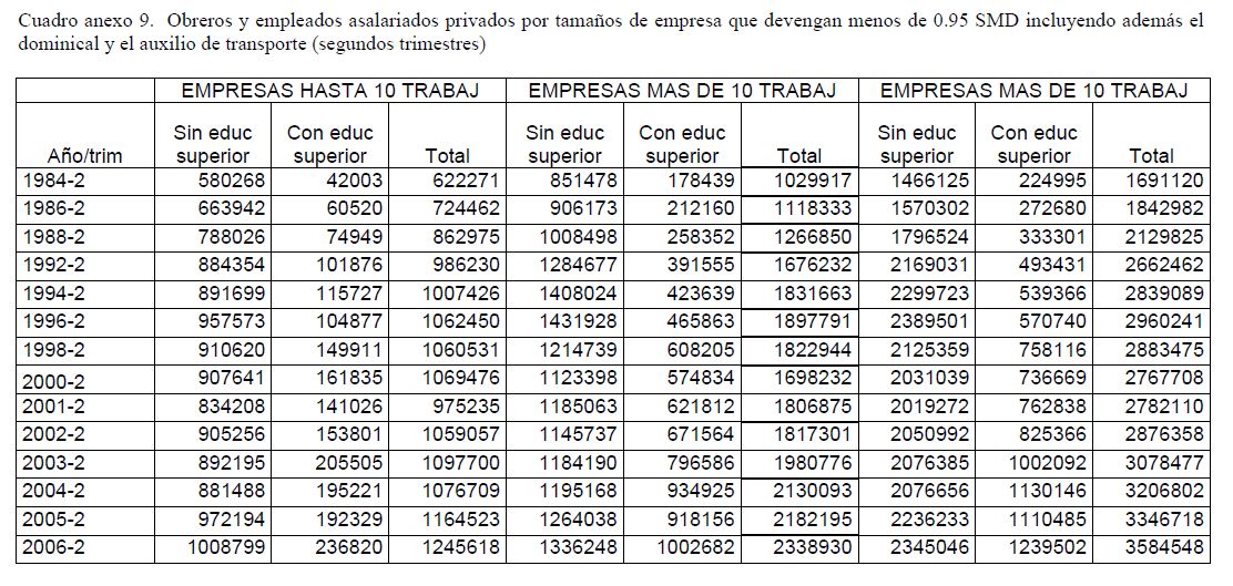 Salario mínimo, salario medio y empleo asalariado privado en Colombia