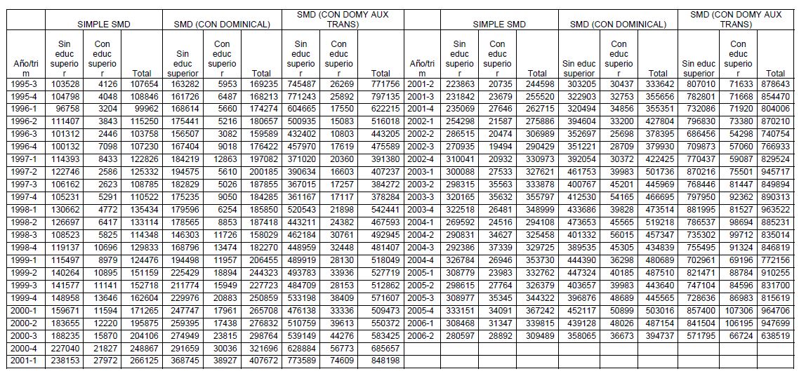 We use quarterly household surveys data of Colombian seven largest cities, to estimate the degree of evasion of the legal minimum wage. We also assess the strategies that have put into practice private companies (more extra hours, hiring less young worker