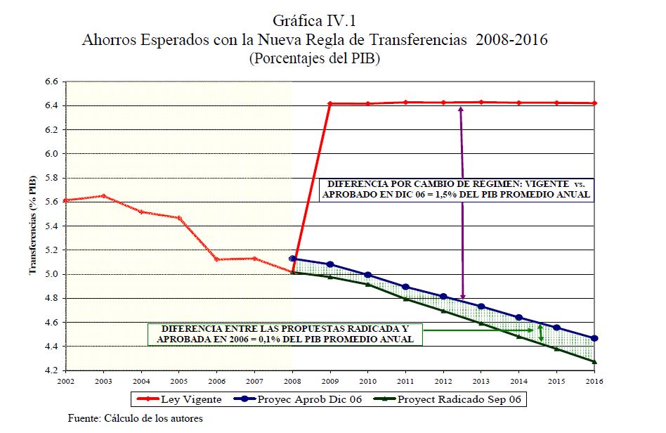En este documento se analizan las implicaciones fiscales y sectoriales de la reforma a las transferencias territoriales que actualmente se debate en segunda vuelta en el Congreso. La reforma ajusta los montos que el gobierno nacional deberá transferir a las regiones y considera marginalmente la discusión sobre su distribución sectorial y territorial. Las competencias de gasto no se consideran en el proyecto, por lo que el modelo de descentralización fiscal no sufrirá cambios sustanciales. Se concluye, en primer lugar, que el Sistema General de Participaciones establecido en 2001 ayudó a flexibilizar el manejo del presupuesto general de la Nación, y le ha permitido al gobierno nacional hacer ahorros importantes que, infortunadamente, no se han reflejado plenamente en sus resultados fiscales. Con lo aprobado en la primera legislatura, la administración central podría mantener en el mediano plazo su actual postura fiscal y usar los ahorros potenciales para reducir su deuda. En caso de hundirse el proyecto, se compromete la sostenibilidad de sus finanzas. En segundo lugar, las transferencias han permitido avances importantes en materia de cobertura, especialmente en la educación y la salud, aunque no se ha logrado su universalización. Entre tanto, pocos avances se registran en materia de eficiencia y calidad en la prestación de estos servicios. Los pronósticos sectoriales dependen, en buena parte, de los fondos públicos asignados en los próximos años. Con el texto aprobado en la primera legislatura, se logra cobertura plena en el nivel básico de educación y en el régimen subsidiado de salud.