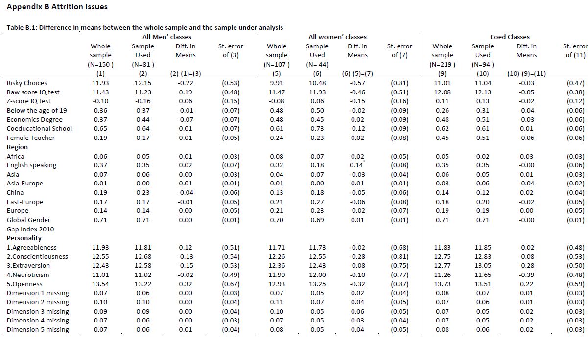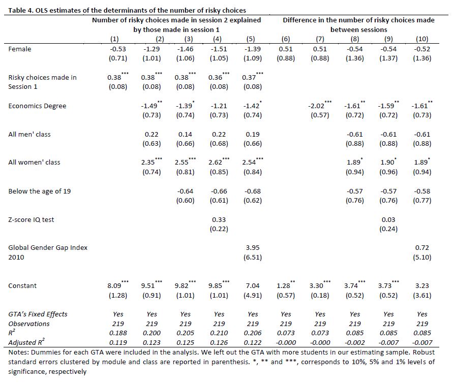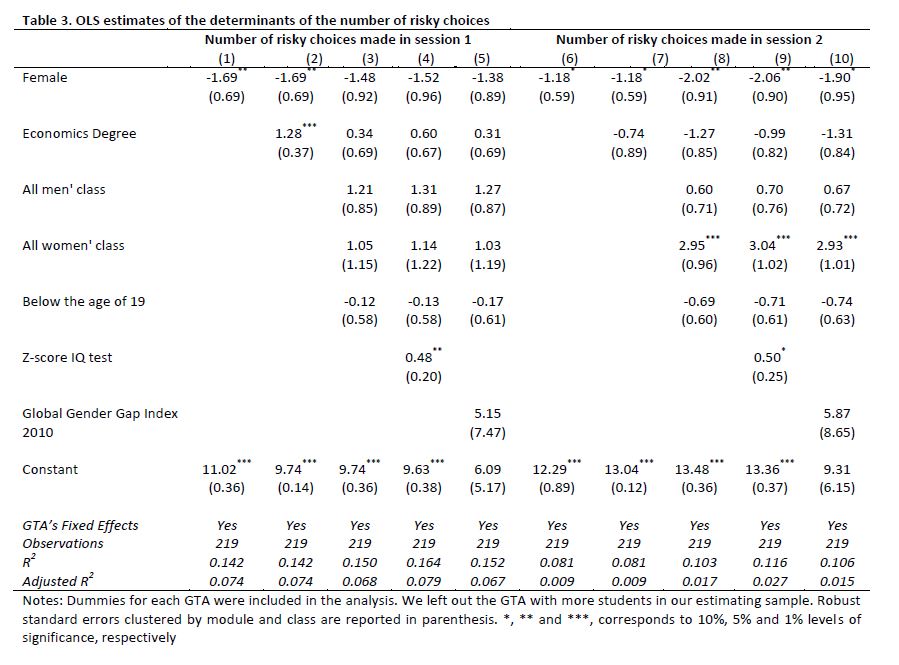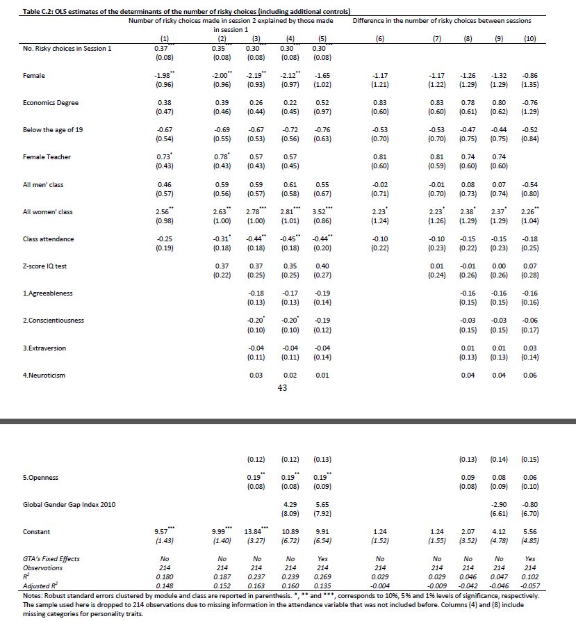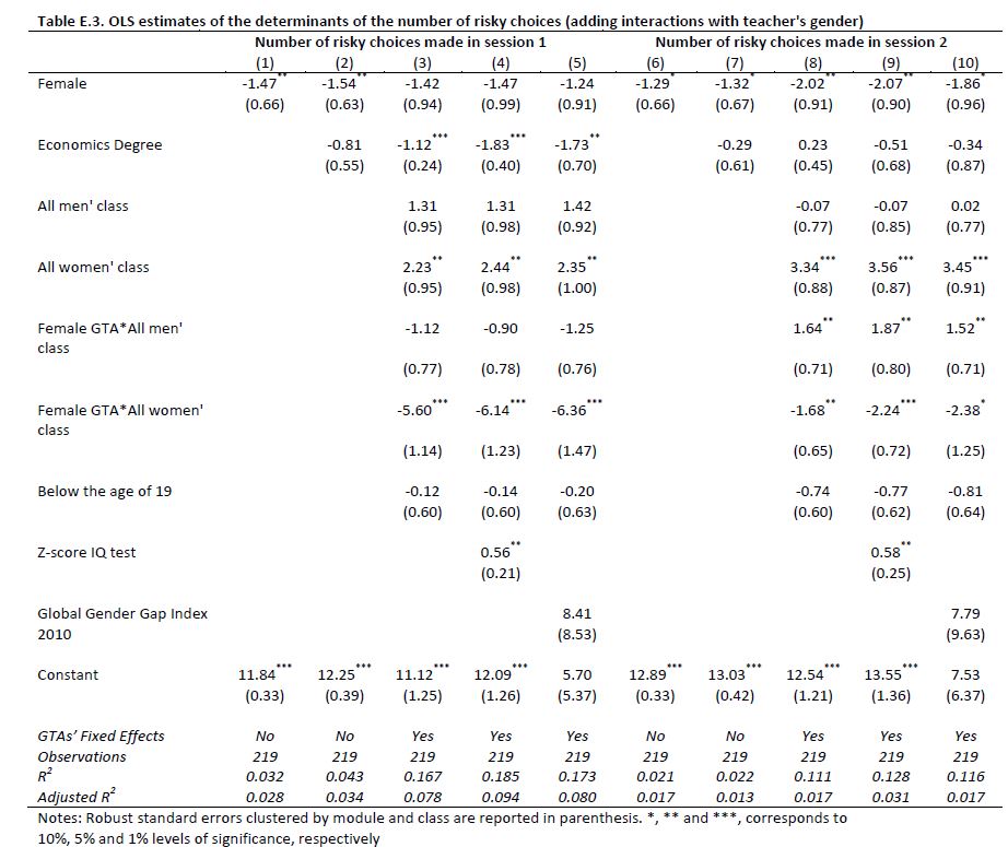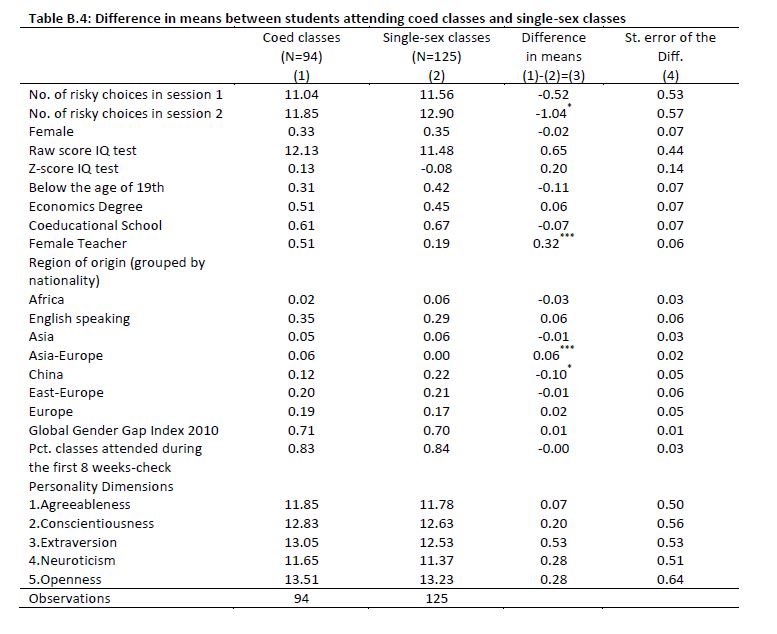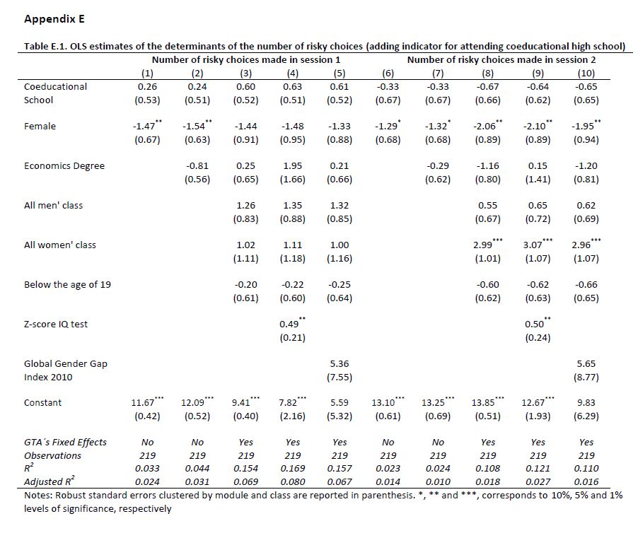 Gender differences in risk aversion : Do single-sex environments affect their development?