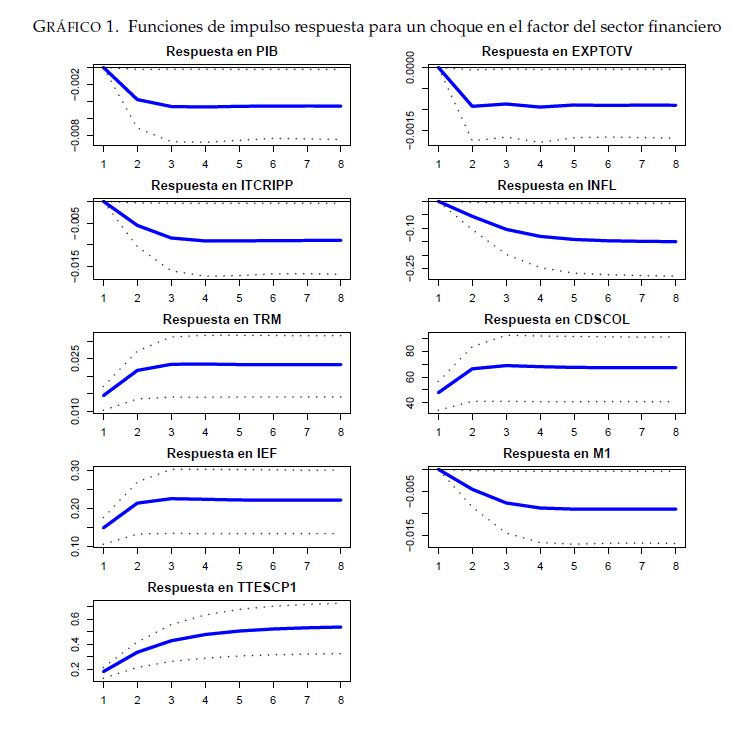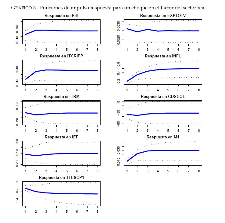 We estimate the effects of financial and real shocks on 111 variables of the Colombian economy for the sample period 2003-2013. We use an extension of the F AV AR model proposed by Bernanke et al. [2005], where the series are explained by both, a common c