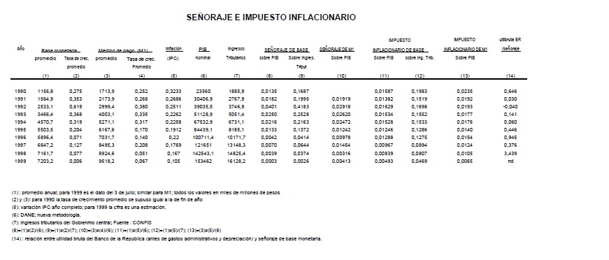 Señoreaje, impuesto inflacionario y utilidades brutas) del Emisor: definiciones y medidas del caso colombiano reciente