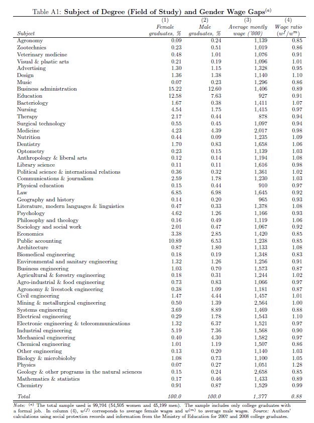 In this paper we show the importance of subject of degree in explaining the gender wage gap in Colombia. In order to minimize the influence of gender differences in experience, promotions, and job changes on the wage gap, we focus on college graduates who