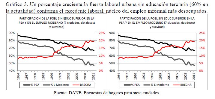 This article assesses the challenge posed by the access to a pension for the least educated and more vulnerable Colombians. It relates the trends of the labor market with the low pension coverage: the bias of the urban modern employment against the least
