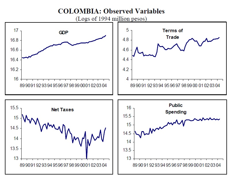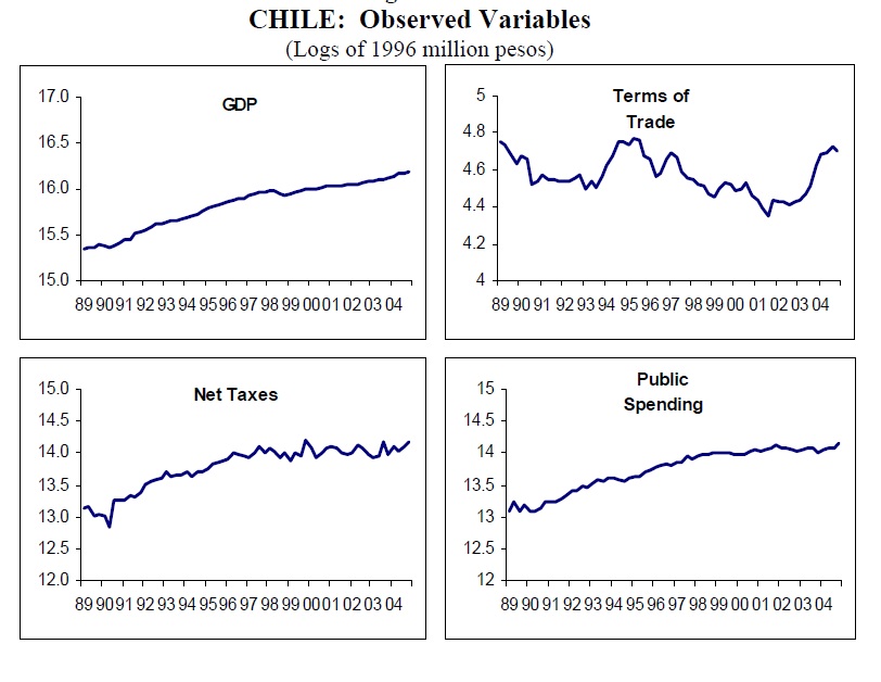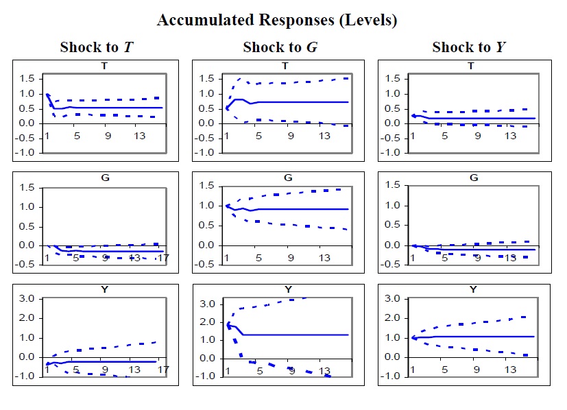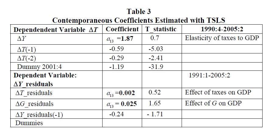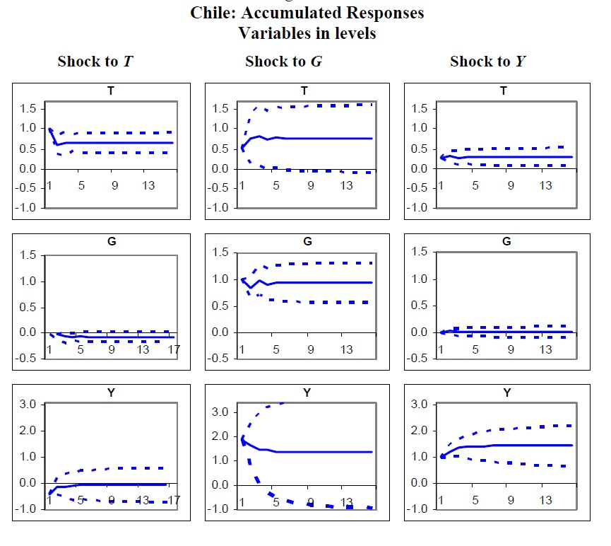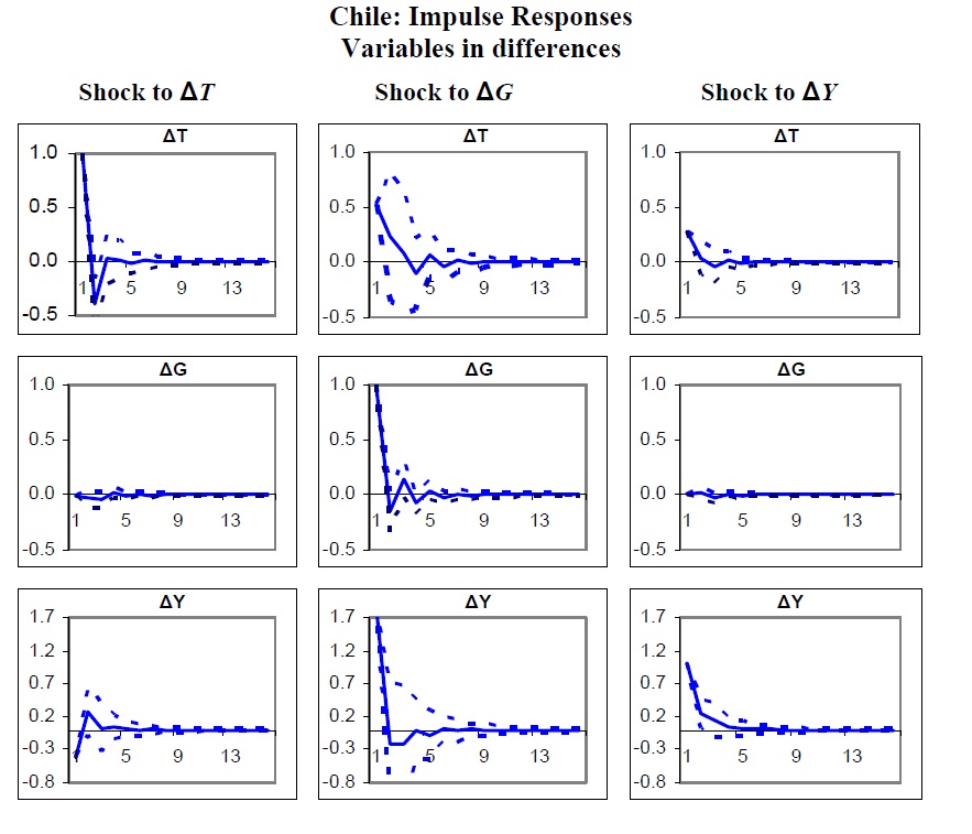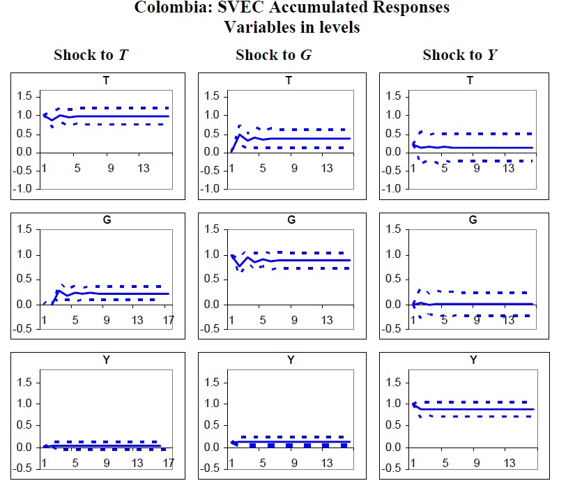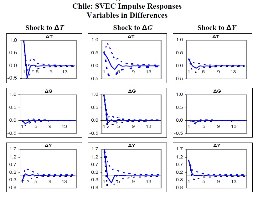 Structural VAR and Structural VEC models were estimated for Chile and Colombia, aiming at identifying fiscal policy shocks in both countries between 1990 and 2005. The impulse responses obtained allow the calculation of a peso-for-peso ($/$) effect on out
