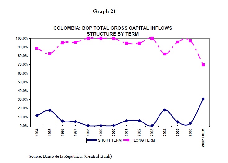 This paper analyzes the evolution and impact of capital flows in Colombia over the past five years. An examination of the nature and composition of the capital flows indicates that to large extent they have originated in foreign direct investment, especia