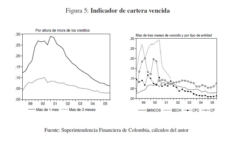 En este documento se caracteriza el endeudamiento del sector corporativo privado con el sistema financiero durante el período 1998-2005, y se hallan los determinantes de la probabilidad de que una empresa colombiana incumpla con el pago las obligaciones que ha contraído con este. A través de un modelo logit multinomial se encontró que la probabilidad de incumplimiento está asociada a indicadores financieros como la liquidez, al número de entidades con los que las empresas tienen créditos y a las características crediticias como los plazos, las garantías y el tipo de establecimiento de crédito. Las predicciones muestran que la probabilidad de incumplimiento se incrementó durante la crisis de finales de la década pasada y en el último año se encuentra en niveles históricamente bajos.