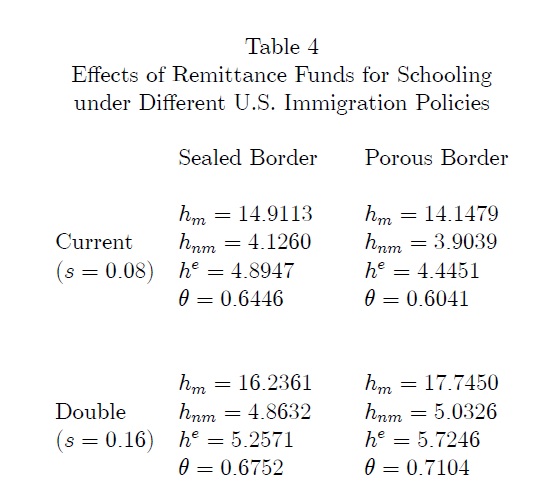 In this paper we model the effect of migrant remittances on job creation and human capital formation, given migration prospects. Model calibration of deep parameters was performed with data from the AMCO survey on migration and remittances. The simulation
